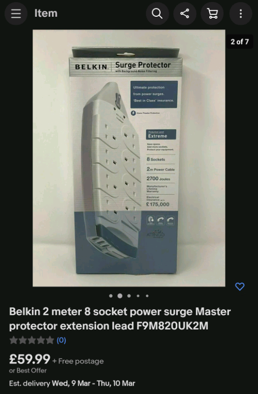 Belkin 2 Meter 8 Socket Power Surge Master Protector Extension Lead In Forest Hill London Gumtree
